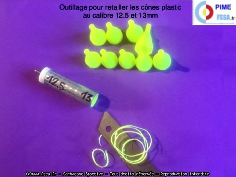Un petit outillage de fabrication personnelle est indispensable pour retailler les cônes proprement au calibre du tube avec lequel ils seront tirés.